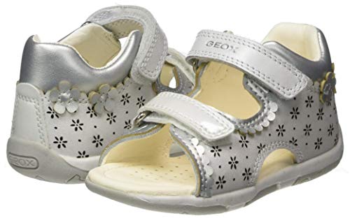 Geox B Sandal Tapuz Girl B020ya044ajc, Primi Passi Bimba 0-24, Bianco Argento White Silver C0007, 21 EU