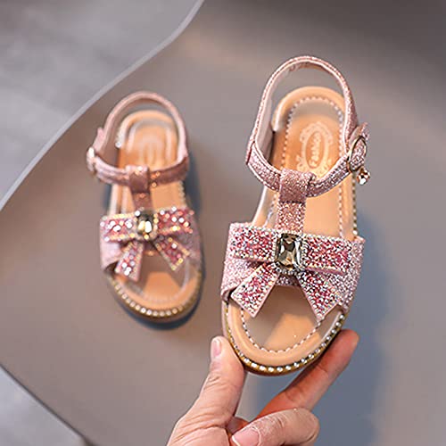 MYLH Sandali da bambina per bambini, 20 ragazze, sandali estivi, suole morbide, comode, da spiaggia, con strass, aperte, da principessa, sandali piatti per bambini, con fiocco, Colore: rosa., 32