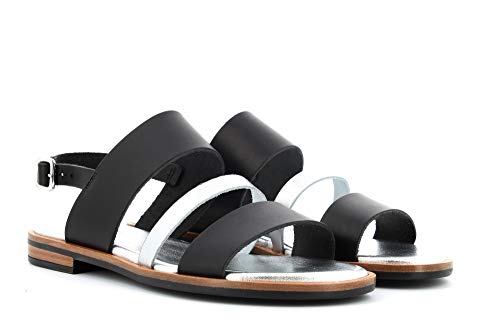 Frau, Sandali con Chiusura sul Retro Donna, Multicolore (Nero Silver Ne Si), 36 EU