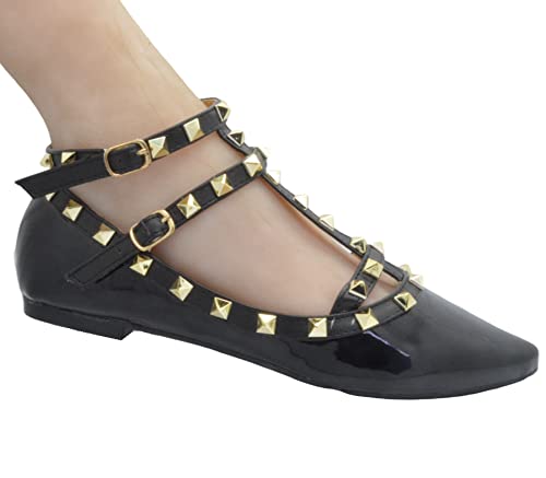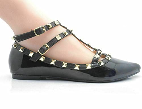 Sandali da donna con borchie e strass, con cinturino alla caviglia e cinturino alla caviglia, Nero, 37 EU
