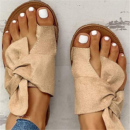XXZ Sandali da Donna correttore per Alluce valgo Infradito estive in Pelle Signore comode Sandali Stecche Borsite Scarpe Comode Casual da Spiaggia e da Viaggio,Cachi,36