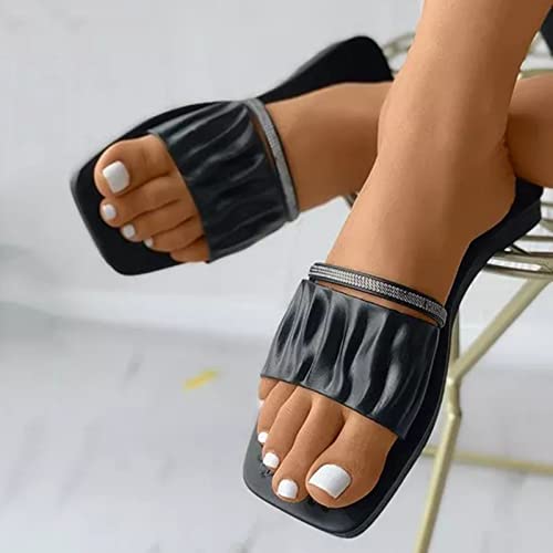QSSA Sandali da donna, estivi comodi con tacco piatto, alla moda, infradito da spiaggia, con suola imbottita, punta aperta, colore: nero, blu marino