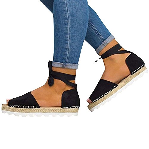 Sandali Donna Estivi Eleganti Bassi Plateau Aperti Espadrillas Zeppa Flat Mare Romano Boemia Gladiatore con Tacco Scarpe Ciabatte Nero Beige 35-44 BK36