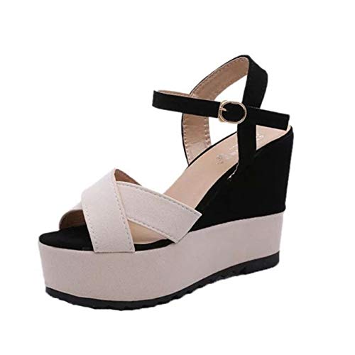 Sandali da Donna Moda Patchwork Peep-Toe Cinturino alla Caviglia Slingback Piattaforma Antiscivolo Scarpe con Zeppa estive Traspiranti