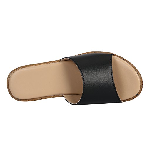 Sandali da donna in pelle foderati con tacco medio e zeppa