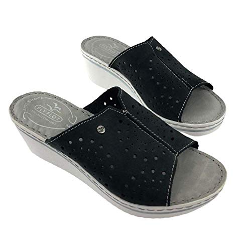 Fly Flot SANDALI DONNA IN PELLE TRAFORATA NERO ZEPPA ALTA 41D41 3G (NERO, 38, numeric_38)
