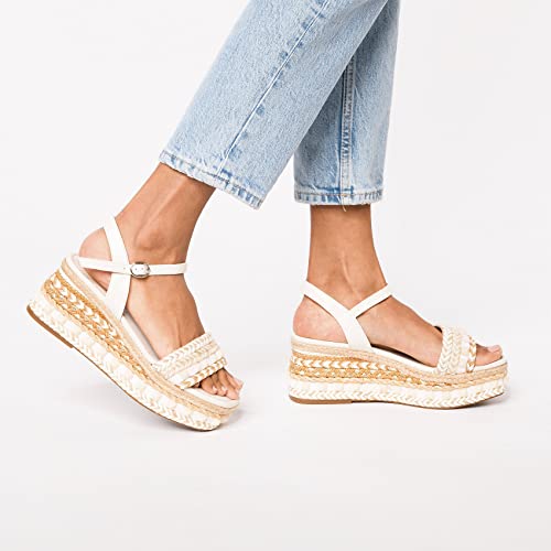 Sandali da donna con piattaforma realizzata in pelle. V22240 NAPA White, Non si applica, 38 EU