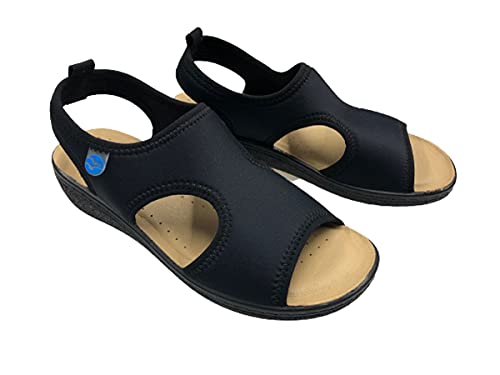Fly Flot SANDALI Donna con Sottopiede Vera Pelle Anti Shock ANATOMICO Made in Italy (NERO, numeric_35)