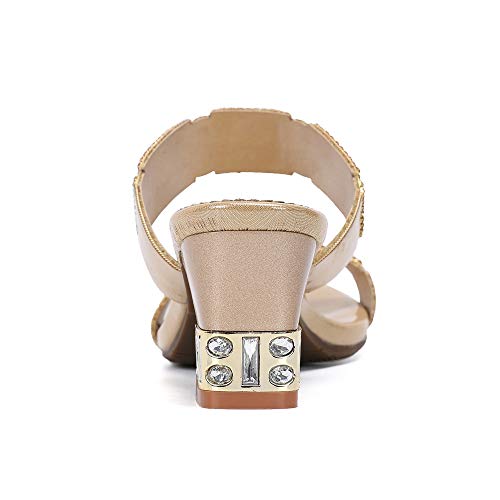 Sandali da Donna con Strass Tacchi Alti Sandali Pantofole Strass Luccicanti Strass Punta Aperta Sandali Moda Tacco Medio Scarpe Estive,d'oro,35EU