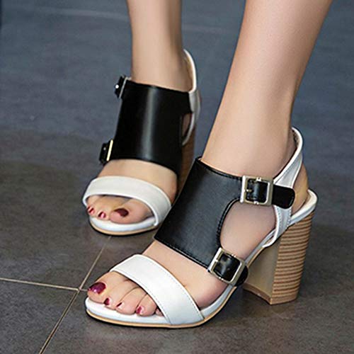 SJJH - Sandali da donna con tacco a blocco, estivi, Nero (bianco), 37 EU