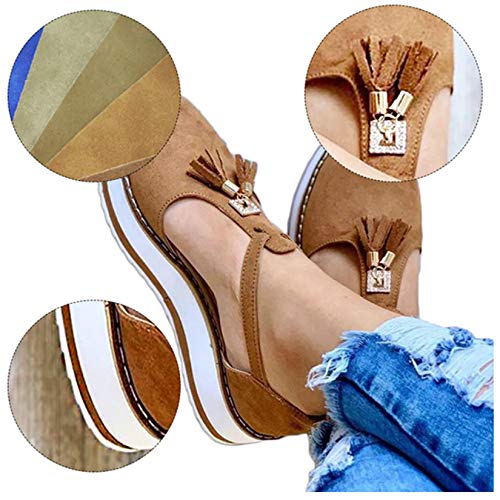 HYWL Sandali Donna Zeppa Punta Chiusa Scarpe con Fibbia Piattaforma Sandali in Pelle con Nappe Mocassini alla Moda Sandali Estivi Sport Atletici Escursionismo Sandali da Trekking,Marrone,37