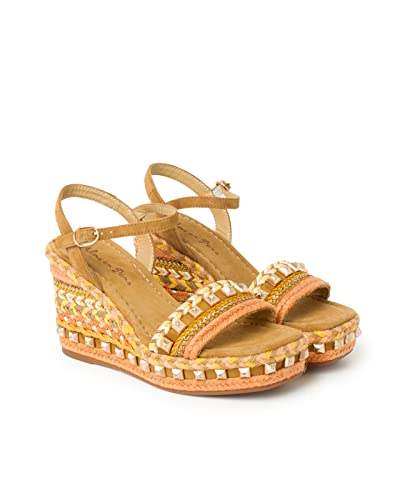 Sandali da donna con zeppa realizzata in pelle. V22230 NAPA Blush, cammello, 41 EU