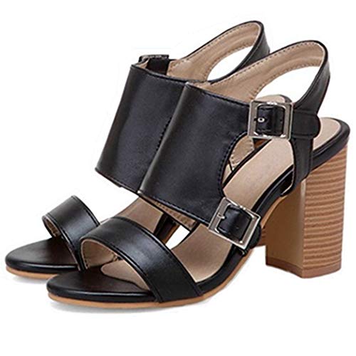 SJJH Sandali estivi da donna, per il tempo libero, con tacco, Nero (Nero ), 33 EU
