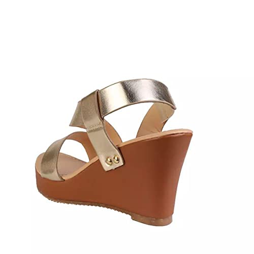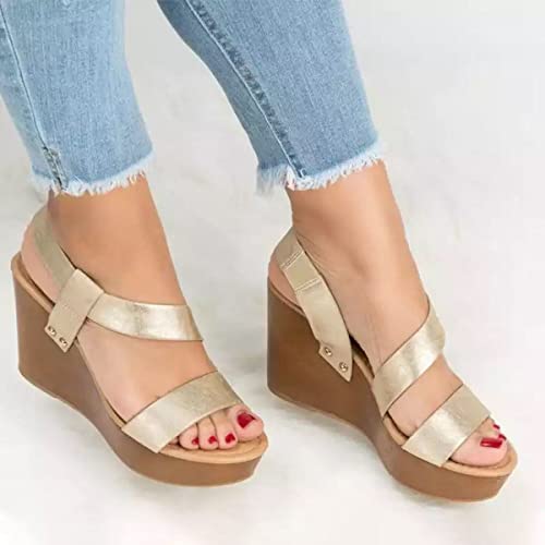 Sandali Estivi Eleganti Da Donna, Sandali con Zeppa Antiscivolo, Comode Plateau Sandali Punta Aperta, Sandali con Tacco Alto de Punta Aperta Traspiranti Casual Piattaforma Moda (Size:36 EU,Color:Oro)