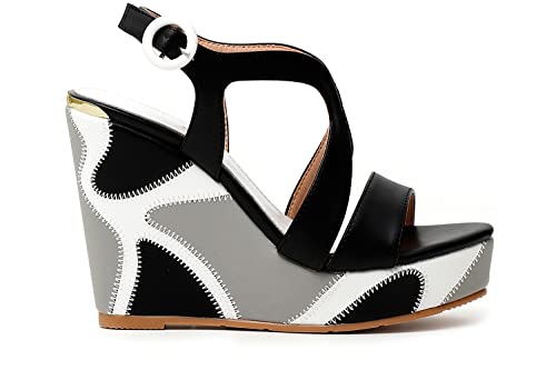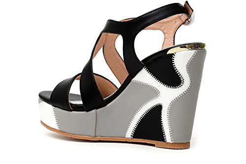 Sandali con Fibbia su Zeppa Alta Patchwork Nero 36