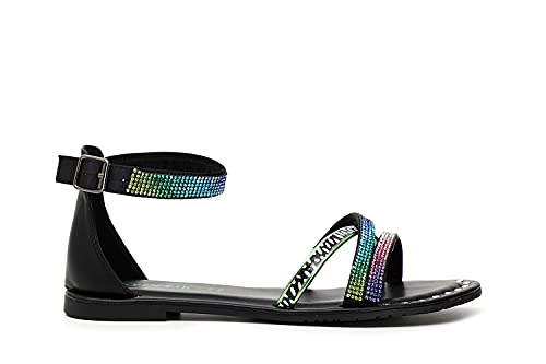 Sandali multilistini con Strass Arcobaleno e Cinturino alla Caviglia Multicolor 39