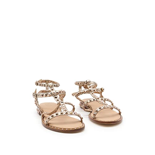 ASH Sandali Precious in Pelle Beige con Tacco Basso e Borchie (Numeric_38)
