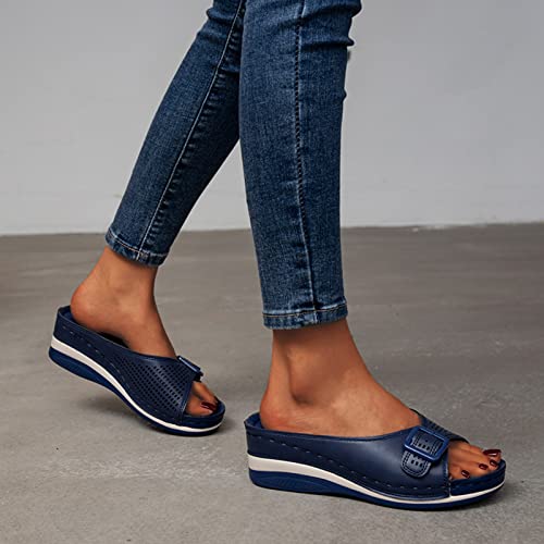XWCG Sandali Punta Aperta Moda Donna Pantofole Ortopediche Estive Zoccoli Comode Plateau Ciabatte Antiscivolo Scarpe Spiaggia con Fibbia Sandali,Blu,US8/EU40