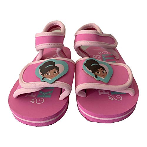 Sandali da spiaggia/piscina per bambini, apertura facile a doppio graffio, suola dentellata antiscivolo, motivo principessa cavaliere, Rosa (Rosa), 26 EU