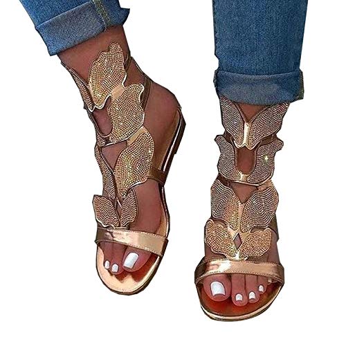 BTKD Sandali con Strass A Farfalla con Punta Aperta Antiscivolo Casual da Donna Sandali da Donna con Strass Gladiatore alla Moda Iatti A Forma di Farfalla per Le Donne da Sposa,d'oro,35