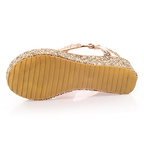 Sandali con Tacco Alto Donna, Sandali Split Toe Casuale Zeppa Scarpe da Festa con Plateau Senza Chiusura Slingback Scarpe Flatform, 9352Piw Oro Numero 37 EU