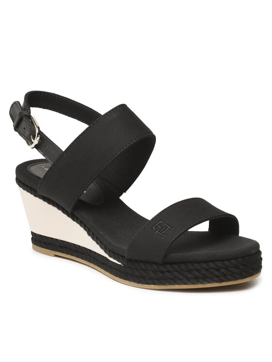 Tommy Hilfiger Sandali Rope Webbing Mid Wedge FW0FW07092 Nero