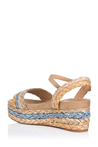Alma en Pena Sandalo da donna con zeppa in Rafia intrecciata V22BL1081 Rafia Multi, Sabbia, 36 EU