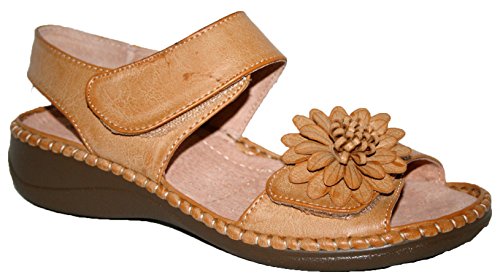 Sandalo estivo donna, zeppa, cinghie con fiore fiocco.