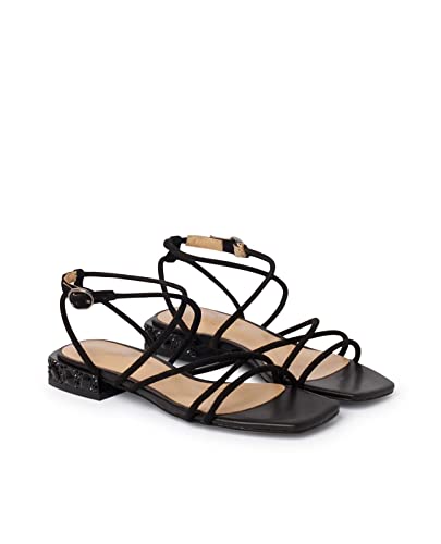 Alma en Pena sandalo sandalo pelle e camoscio nero tacco alto 3 cm con applicazioni pietra nero rif.47