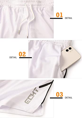 Sandbank Pantaloncini da ginnastica da uomo, 12,7 cm, ad asciugatura rapida, per corsa, bodybuilding, con tasche, bianco, L