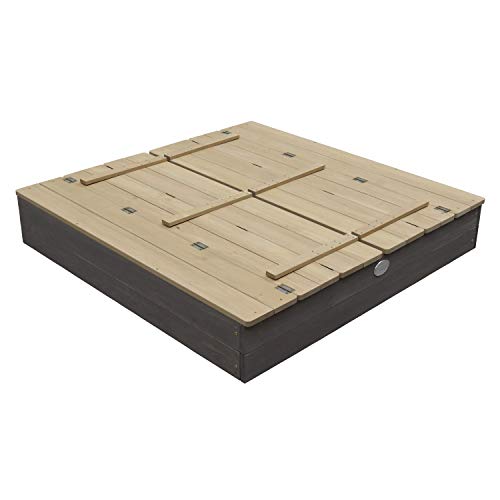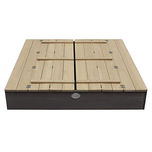 AXI Ella XL Sandbox in legno FSC con panche e coperchio | Sabbiera per bambini in grigio e marrone | 120 x 120 x 20 cm..