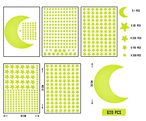 Sandno Stelle Fluorescenti Adesive Soffitto 620 Pezzi Di Stelle Medie e Stelline Luminose Per Decorazione, Stelline Luminose per Cameretta (620 stars)