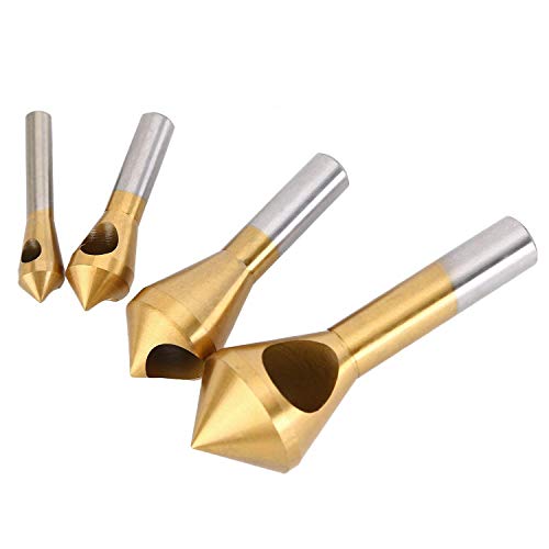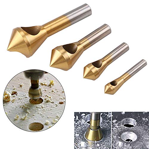 SANDS Sbavatore per Smusso di Sbavatura Set con Svasatore Rrivestito in Titanio Punta per Trapano in Plastica Metallo Legno 4 Pezzi