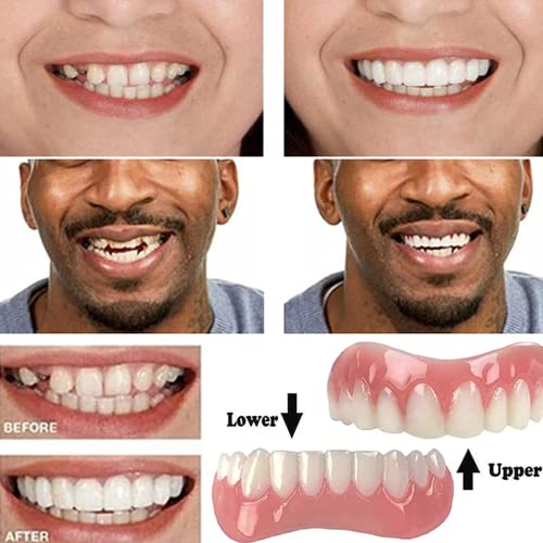 Sanfiyya 4 Paia di dentiere in Silicone, Denti sorridenti istantanei di impiallacciatura cosmetica, Abbinamento Superiore e Inferiore, Set di Protesi Dentarie per i Dentisti Senza Denti.