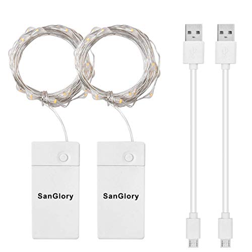 SanGlory Catena Luminosa Led Bianco Caldo, 3 metri Stringa Luci USB Ricaricabile, 30LEDs Ghirlanda filo d'argento Luci Natale a Batterie, Impermeabile Luci Stringa LED per Uso Interno e Esterno