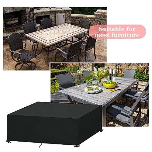 ➥【Design antivento】Ci sono 4 fibbie agli angoli della copertura protettiva per mobili da giardino, che possono essere facilmente attaccate alle gambe dei mobili. Le coulisse inferiori possono regolare la tenuta per evitare che la copertura per mobili da giardino all'aperto venga spazzata via dal vento forte.