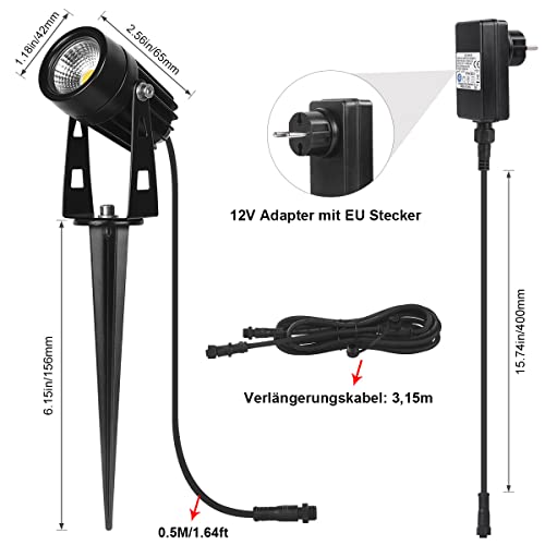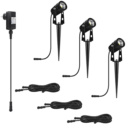 【Illuminazione esterno giardino con connessione flessibile】 - I nostri cavi migliorati con connessione a T rendono l'installazione della luce da giardino più flessibile e la connessione più lunga di queste 3 luci da giardino può raggiungere gli 9,85 metri. L'intero set contiene 1 * adattatore da 12V con cavo da 0,4 m, 3 * luci da giardino a LED e 3 * prolunghe da 3,15 m.
