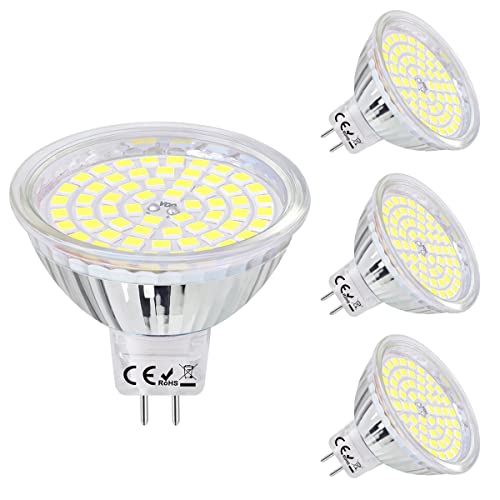 SanGlory Lampadine LED MR16 12V 6000K, GU5.3 LED Faretti 5W Equivalenti a 50W 380 Lumen, Luce Freddo 6000K, 60 * 2835 SMD Lampade LED GU5.3 Non Dimmerabile, 4 Pezzi