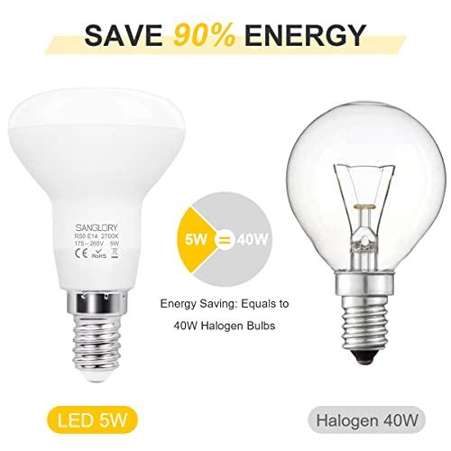 SanGlory E14 R50 LED Lampadine Faretti LED R50 E14 5 Watt Equivalente a Alogena 40W, Luce Calda 2700K, 510LM, 120 Gradi di Luce, Lampade Riflettore LED R50 Non-dimmerabile, 6 Pezzi