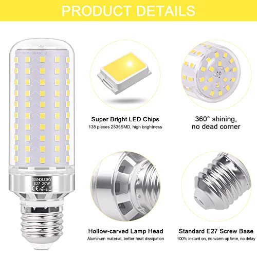 SanGlory 20W Lampadine E27 LED Luce Fredda 6000K Equivalenti a 180W Lampada Alogena, 2150LM, Edison Lampade Mais E27 Candelabro, Alta Luminosità e Risparmio Energetico Non Dimmerabile, 2 Pezzi