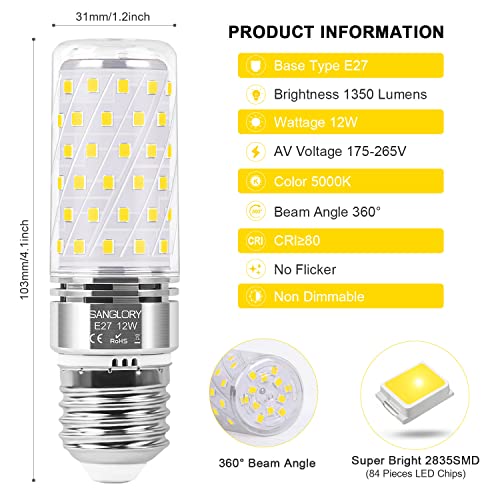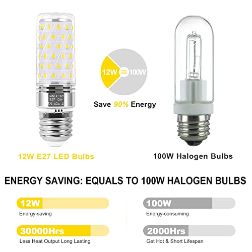 SanGlory Lampadine Led E27 Luce Fredda 12W Equivalenti a 100W E27 Lampada Alogena, 1350LM Lampadina E27 Led 5000K Lampade Led, Nessun Sfarfallio, Non Dimmerabile Attacco E27 Illuminazione Led Set di 4