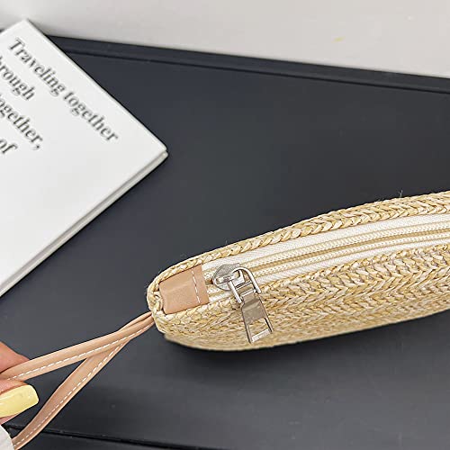 SANGSHI Borsa da polso,Pochette da giorno,Piccole borse,Borse da donna,Borsa tessuta in paglia,Borsa da polso da donna Boemia intrecciata da donna moda borsa da donna piccola, Beige, 33 EU