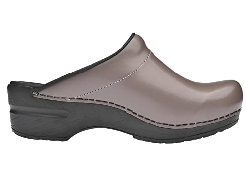 Sanita Sonja PU | Zoccoli Aperti da Donna | Zoccoli Artigianali Originali in Pelle Flessibile | Plantare Anatomico in Schiuma Morbida | Grigio | 42 EU