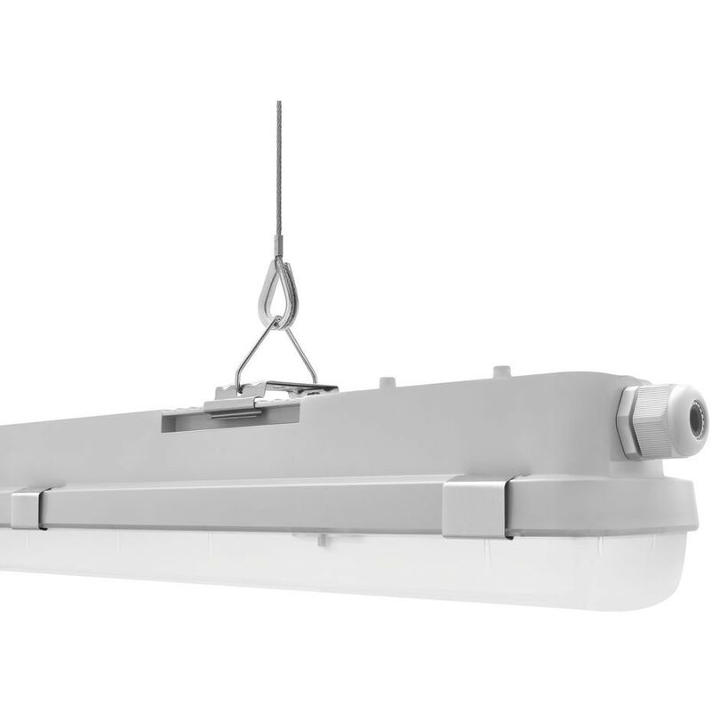 La cassa e il coperchio dell'apparecchio vasque sono realizzati in plastica resistente agli urti. L'apparecchio è quindi resistente alla polvere e all'umidità. È possibile sospendere l'apparecchio con cavi metallici. Grazie alle flange di montaggio a soffitto scorrevoli, non è necessario forare nuovi fori per le staffe di montaggio a soffitto.