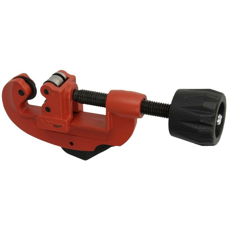 Il taglio compatto del tubo è particolarmente adatto per tubi in acciaio sottile, tubi in rame, alluminio, ottone o acciaio inox. La maniglia rotativa in metallo manipolabile ed ergonomica consente una trasmissione ad alta potenza per il movimento in avanti. l'alloggiamento largo e preciso della ruota di taglio su un asse curvato, fissato contro rotazione, garantisce un taglio angolo retto. la speciale ruota di taglio di qualità dell'acciaio assicura una lunga durata e ha inoltre una limitazione del movimento di anticipo per non tagliare nei rulli del cuscinetto. Un trituratore e una ruota di ricambio sono integrati nella maniglia. Spiaggia tagliata: 3 - 30 mm Produttore: O EAN: 4055668008833