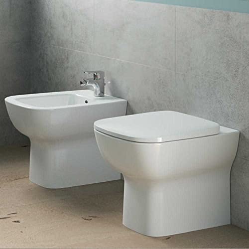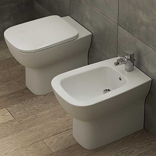 Sanitari filo muro con scarico traslato Ideal Standard Esedra Wc + bidet + sedile slim