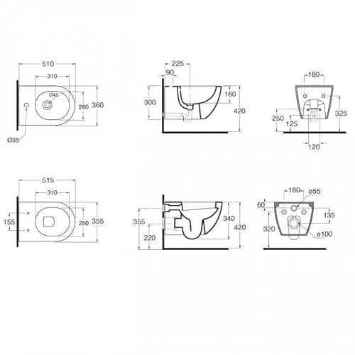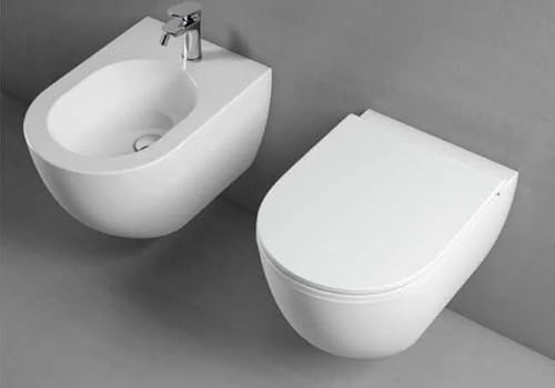 Sanitari Sospesi senza brida Ceramica Azzurra Comoda Design Moderno con Sedile Soft Close
