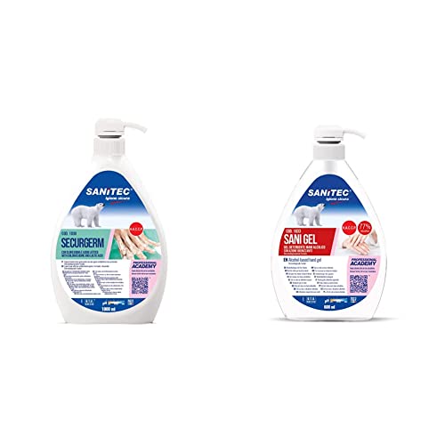 Sanitec 1030 Securgerm Sapone Liquido con per l'Igiene delle Mani, 1000 Ml & Igiene Sicura Gel Mani con il 77% di Alcol, Trasparente, 600 Millilitri