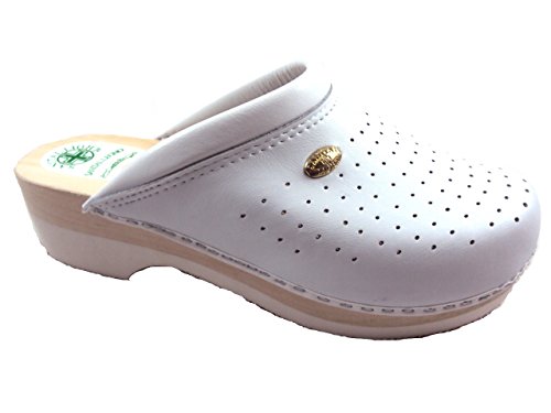 SANITELLA 2750 Bianco Zoccoli Sottopiede Vero Legno Fondo Micro Leggero Rigato Tomaia Pelle