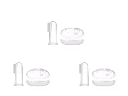 Sanitral - Set di 3 spazzolini da dito per bambini, facili da usare per l'igiene orale per bambini, bambini e neonati, setole morbide e massaggianti, design ergonomico, blu, rosa e trasparente